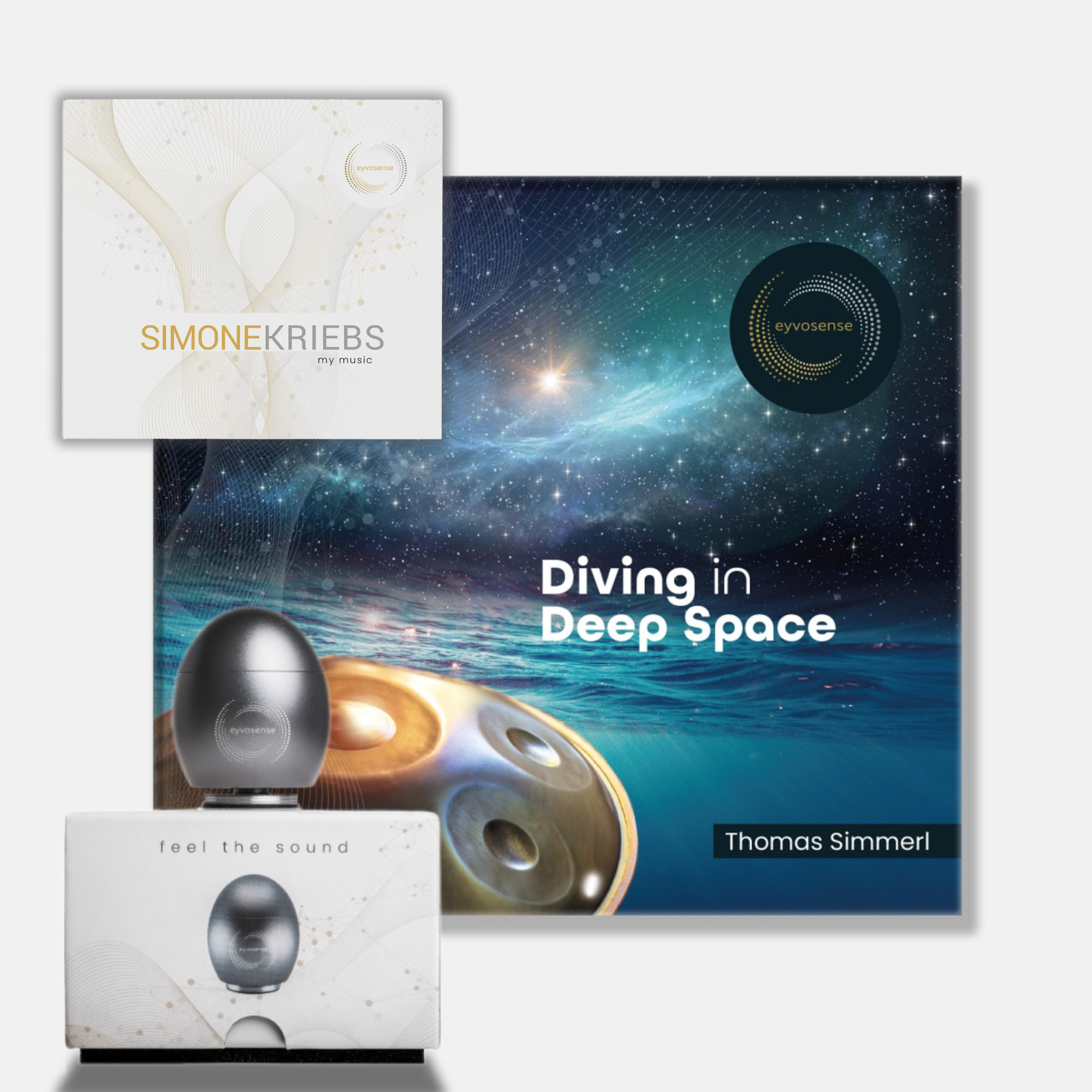 eyvo Platin inkl. Fernbedienung, Ladekabel und Micro-SD-Karte „Diving in Deep Space” von Thomas Simmerl und zusätzlicher Micro-SD-Karte mit 5 von Simone Kriebs eingesprochenen Selbsthypnosen